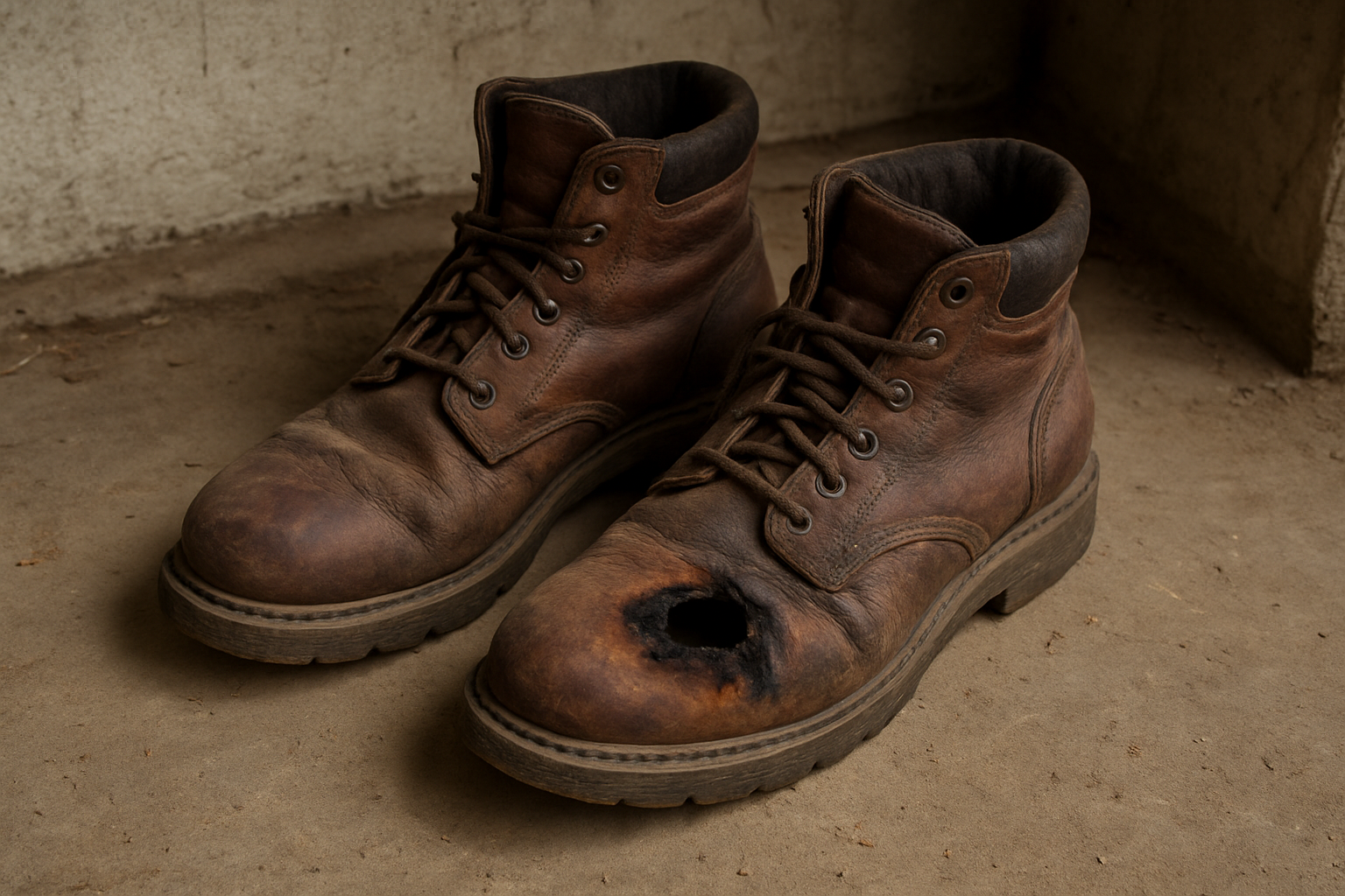 Decades since, I still remember vividly exploring his tiny garage and seeing his 2 pairs of construction boots. One had a hole burned all the way through the leather. He explained in his heavily accented English that those were his cement boots. He’d mistakenly worn them on a day he was assigned to work with hot asphalt and had paid the consequences.